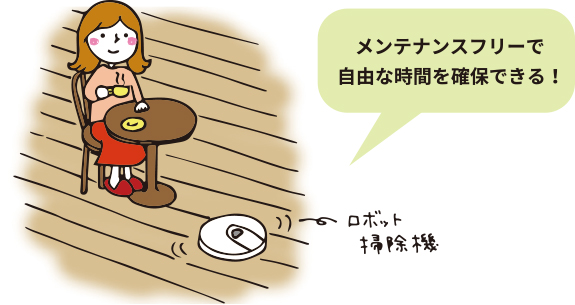 例えば床は、定期的にワックスをかけなくても傷がつきにくいノンワックスのフローリングなど。