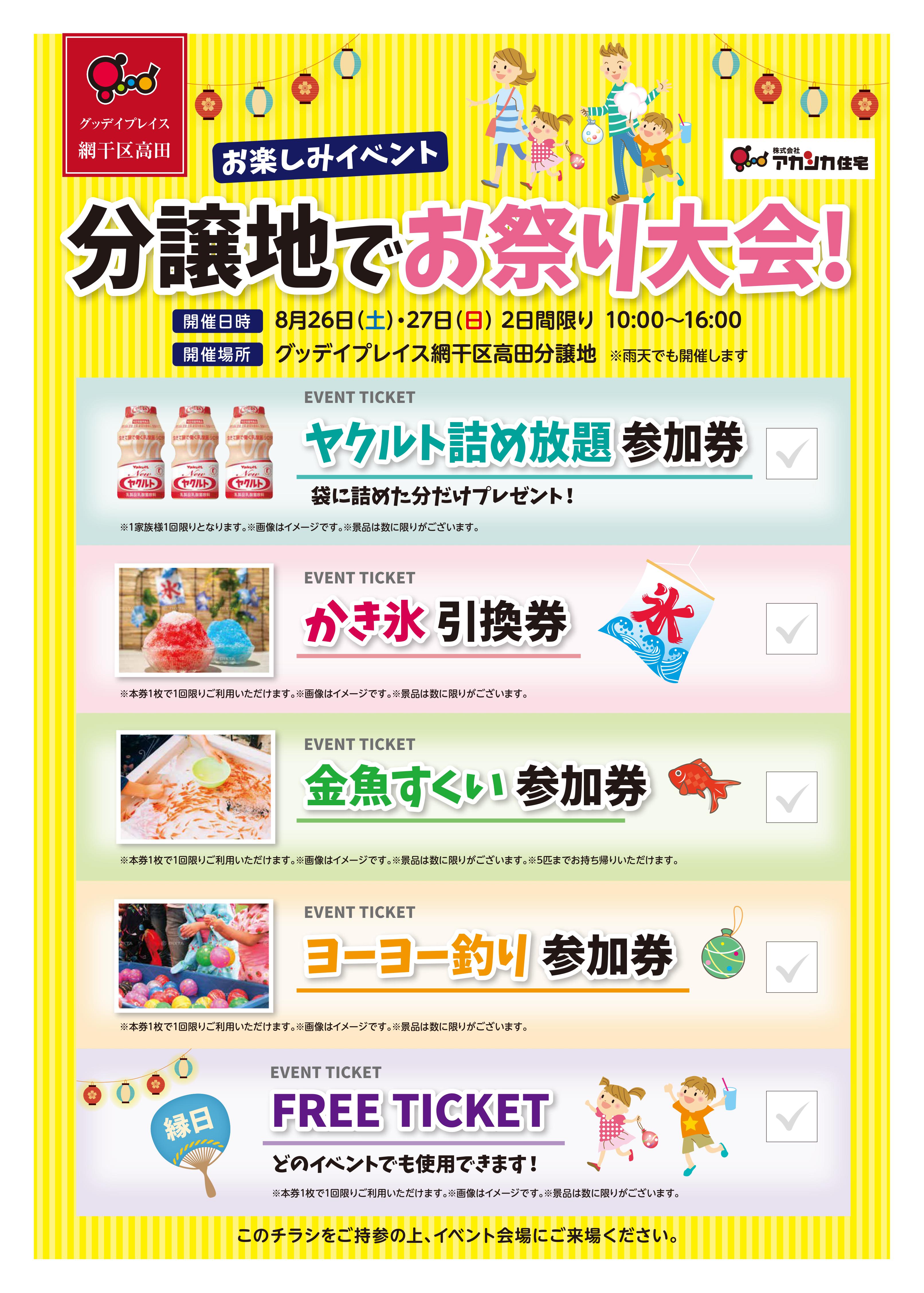 8月26日(土)・27日(日)の2日間、網干区高田の分譲地内で納涼イベントを開催いたします。